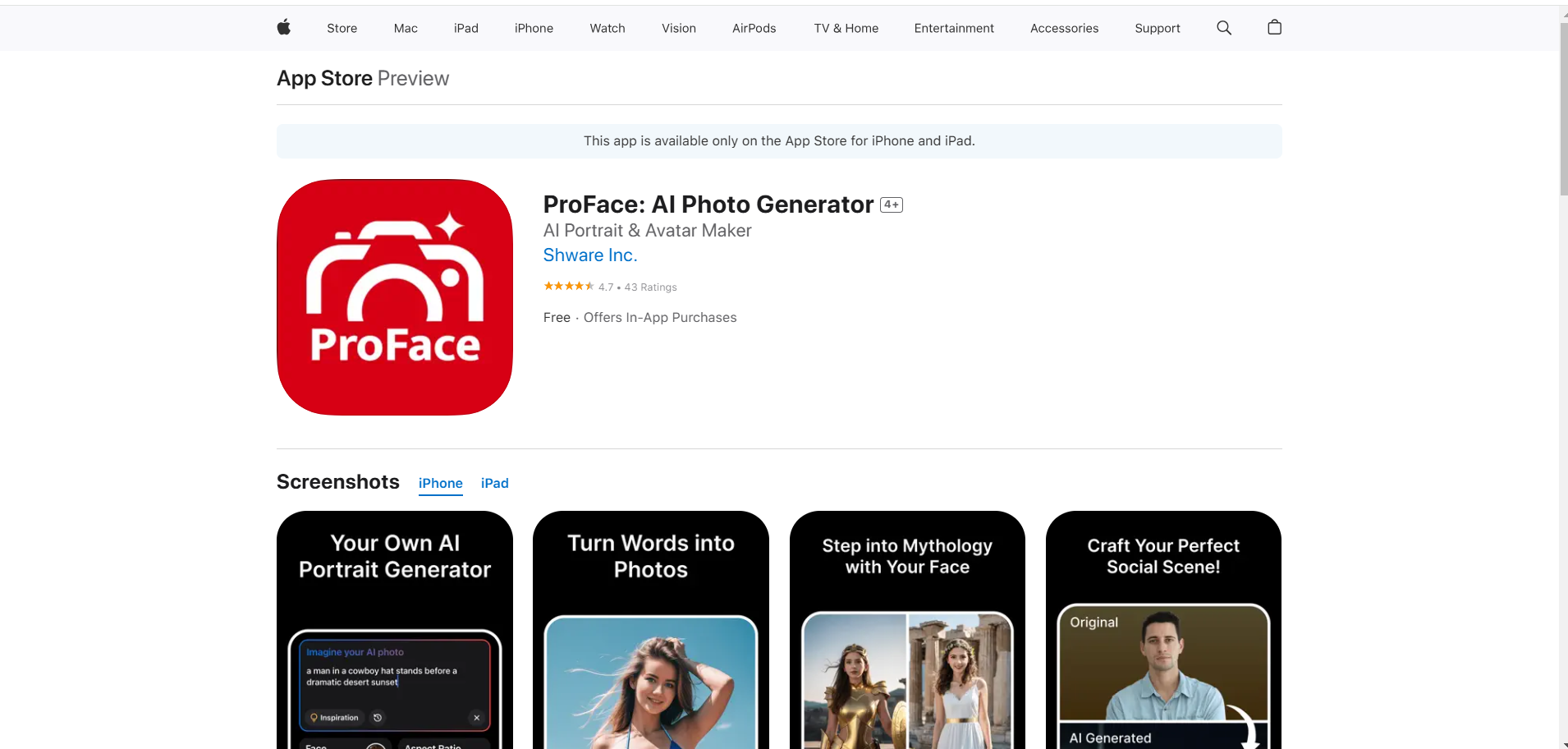 网站:https://apps.apple.com/us/app/proface-ai-photo-generator