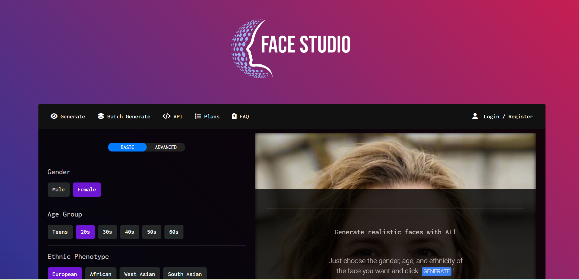 Face Studio是一款由人工智能技术支持的在线工具,可让用户为其创意项目快速生成逼真的人脸。只需点击几下,用户就可以选择他们想要的面孔的性别、年龄组和种族表型,该工具将在几秒钟内生成一张栩栩如生的照片。