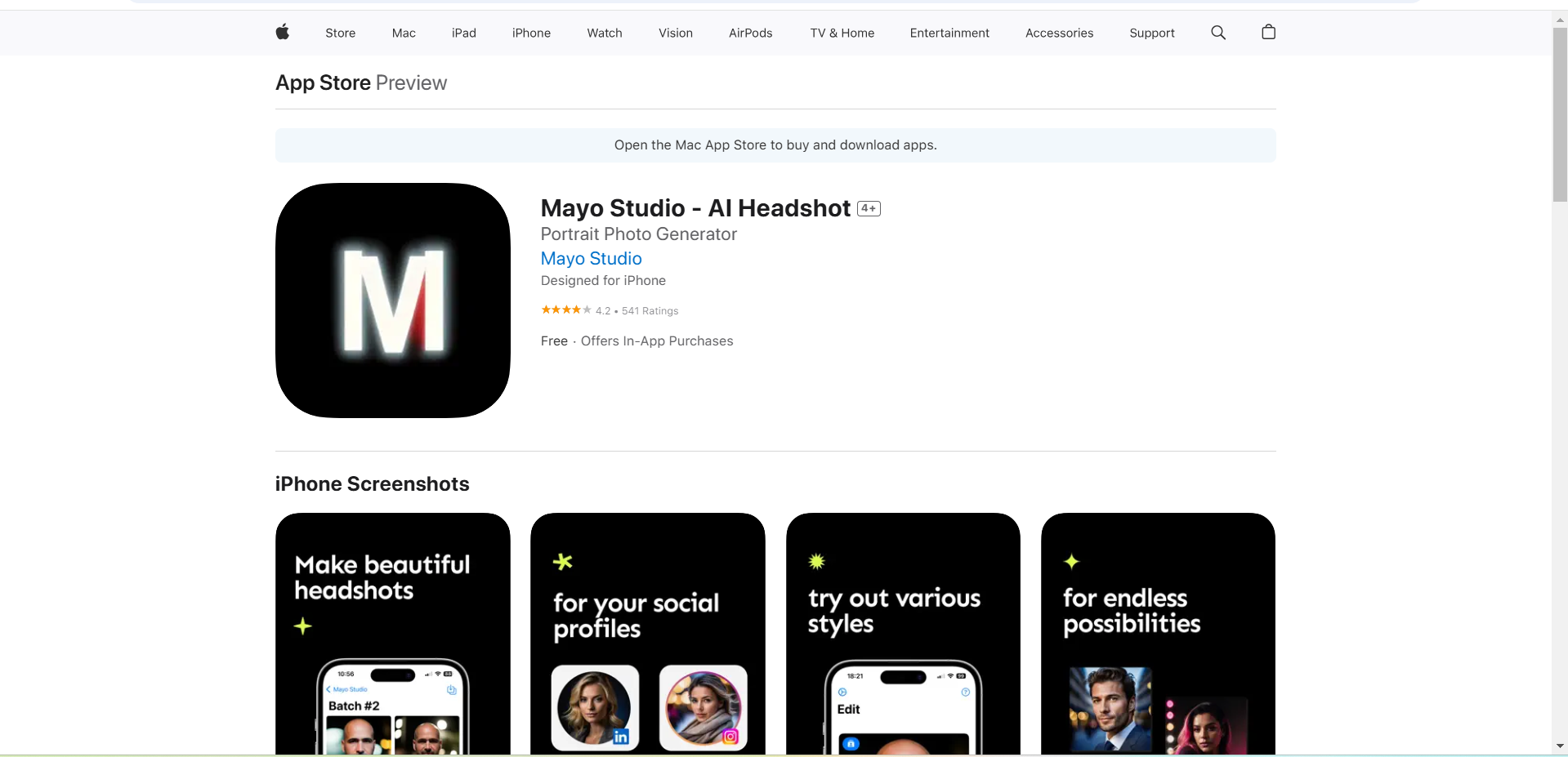 网站:https://apps.apple.com/us/app/mayo-studio-ai-headshot/