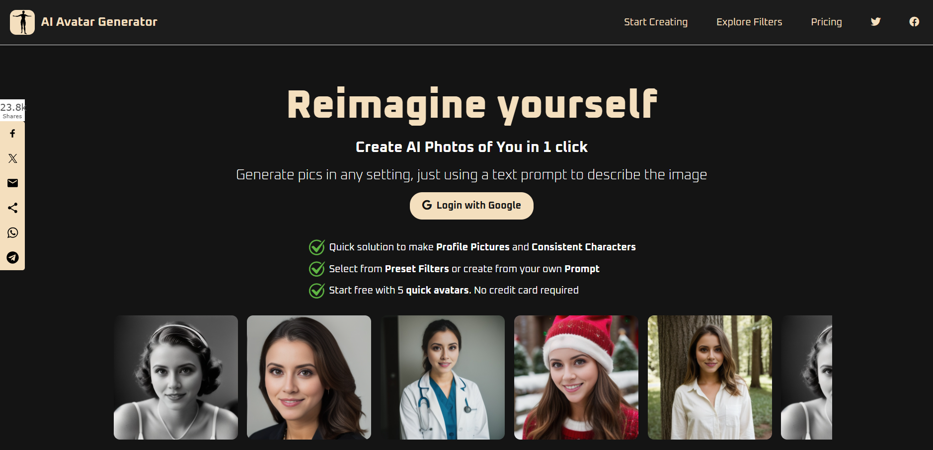 Virtual Face AI 是一个在线平台,利用先进的人工智能算法生成专业品质的头像。这项服务首先由用户提供他们的个人照片,然后该工具创建一系列头像变化。