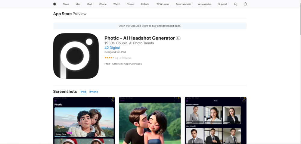 网站:https://apps.apple.com/us/app/photic-ai-headshot-generator/