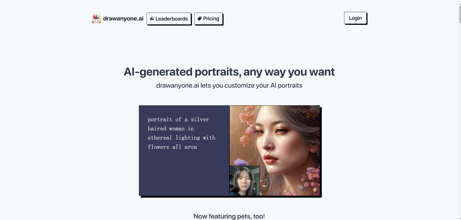 drawanyone 是一款独特的 AI 工具,支持创建各种主题的艺术表现形式。开发该工具的目的是使用户能够以他们喜欢的任何风格绘制他们想要的任何人,从而提供广泛的定制和多功能性。