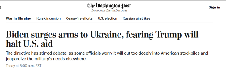 从《华盛顿邮报》的报道来看,拜登之所以会这么着急,源自两方面压力,一方面是俄军在战场上正取得进展,势头正盛;另一方面是即将在明年1月20日上台的美国当选总统特朗普,可能会大幅度调整美国对乌克兰的政策。