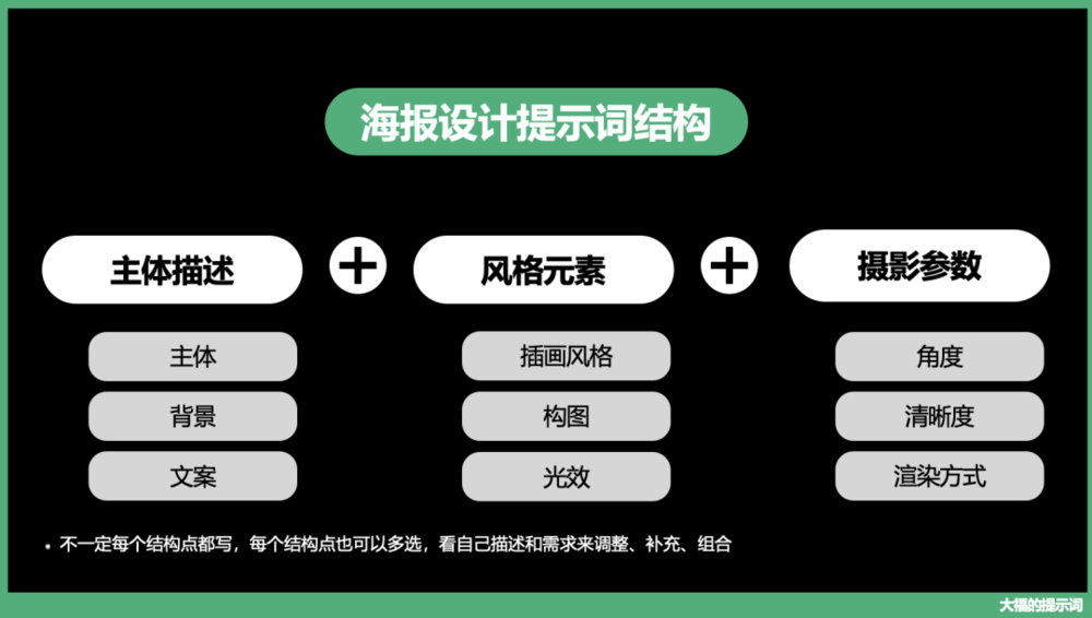 文字容易描述,但设计语言难写。我把高质量海报的提示词结构拆解给你,掌握了结构,你就有了举一反三的能力,轻松驾驭如何写海报。