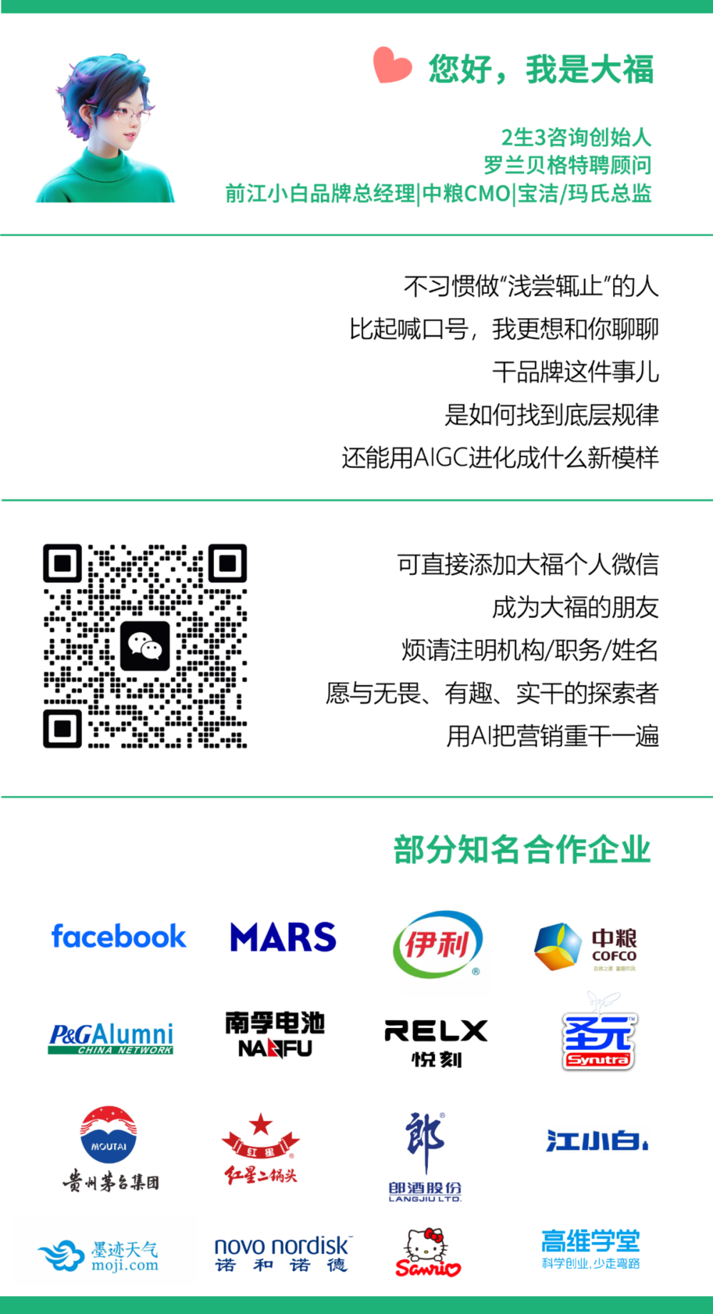 谢谢你看我的文章,期待你随手点赞、在看、转发三连!也期待你的关注,大福将持续更新自己在品牌营销领域的AI思考和实践,超干货!