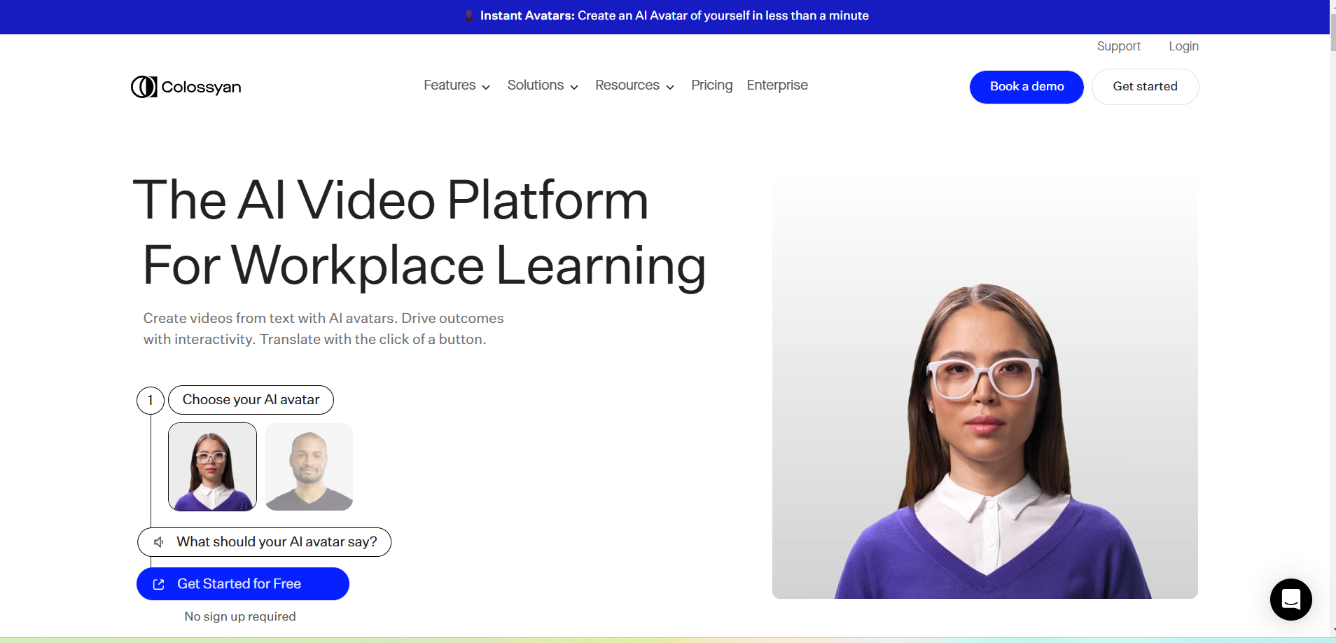 Colossyan Creator 是一款 AI 视频生成工具,可简化视频创建过程。借助其人工智能技术,用户可以在不到 5 分钟的时间内与真人演员一起制作视频。