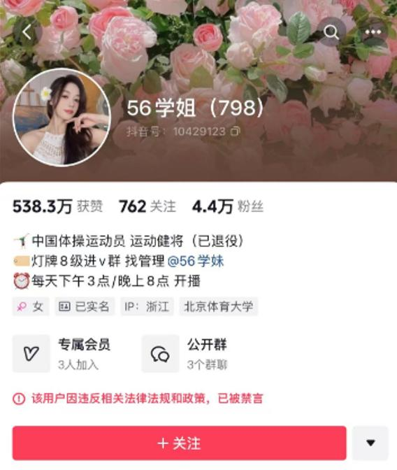 据北京日报,北京时间12月24日,抖音安全中心官方发布,对吴柳芳的账号做出处置的公告。为维护清朗网络空间,抖音安全中心对“美了个滢”“妖十一”“小羊没烦恼_”““山猫无名”“56学姐(798)”“陈奕诺”“Cina池娜”“雅雅”“尤物”“柳下惠”“赫宜”等11个账号采取禁言、暂停营利权限、清除因违规行为增长的粉丝等处置措施,对MCN机构“大海星辰”采取限制后台账号管理功能30日处置。据悉,“56学姐(798)”就是前体操冠军吴柳芳,“大海星辰”是其MCN机构。