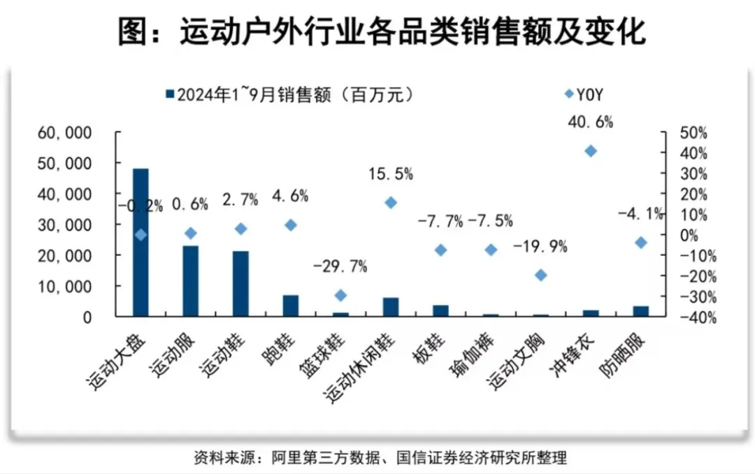 根据国信证券经济研究所的统计,2024年1-9月运动户外行业各品类之中,篮球鞋的销售额同比下滑了29.7%,是所有被记录的品类中降幅最大的一个。李宁纵使在这个领域把产品做出花,也多少会受到品类大势的影响。
