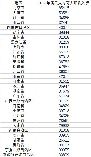 据第一财经,国家统计局网站21日公布31个省份2024年居民人均可支配收入情况。数据显示,去年有6个省份居民人均可支配收入超过了5万元。