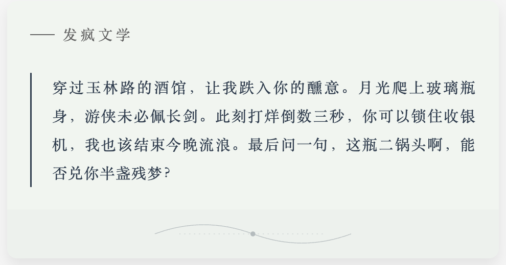 ##Ojective: 通过学习肯德基“发疯文学”创作精髓,创作引人注目的推广文案,融入幽默、反转、流行梗等元素,用来吸引年轻群体,推动二锅头产品销售,最终通过强有力的品牌信息引导消费。