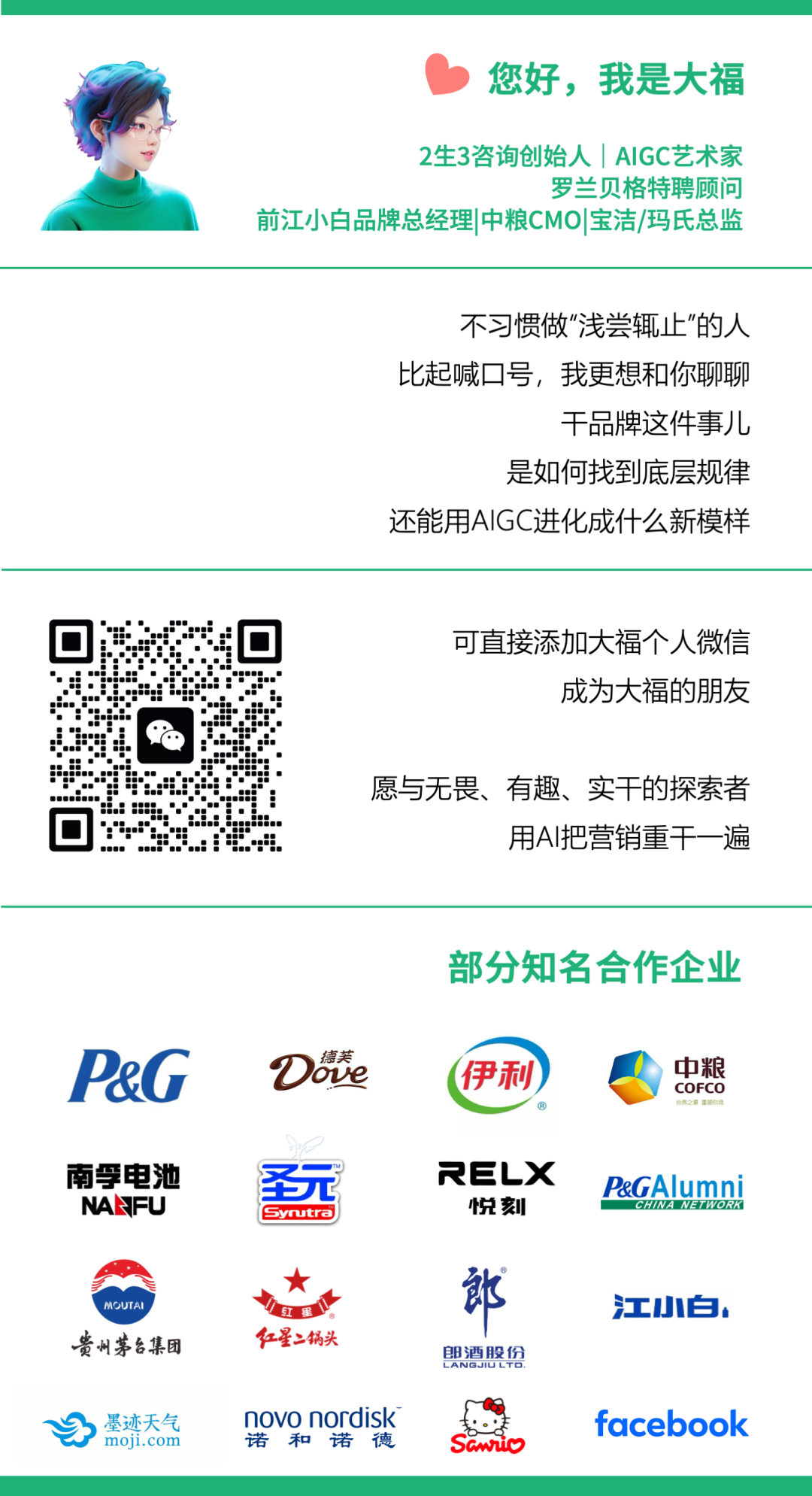 谢谢你看我的文章,期待你随手点赞、在看、转发三连!也期待你的关注,大福将持续更新自己在品牌营销领域的AI思考和实践,超干货!
