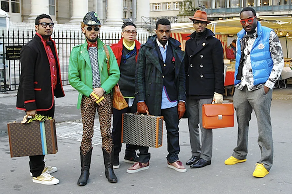 2009 年,这位大哥还拎着一个 Goyard 的箱子去了巴黎时装周,让更多人认识到了这个品牌。后来这幅画面还被《南方公园》演绎,成为这一年流行文化的标志性事件之一。
