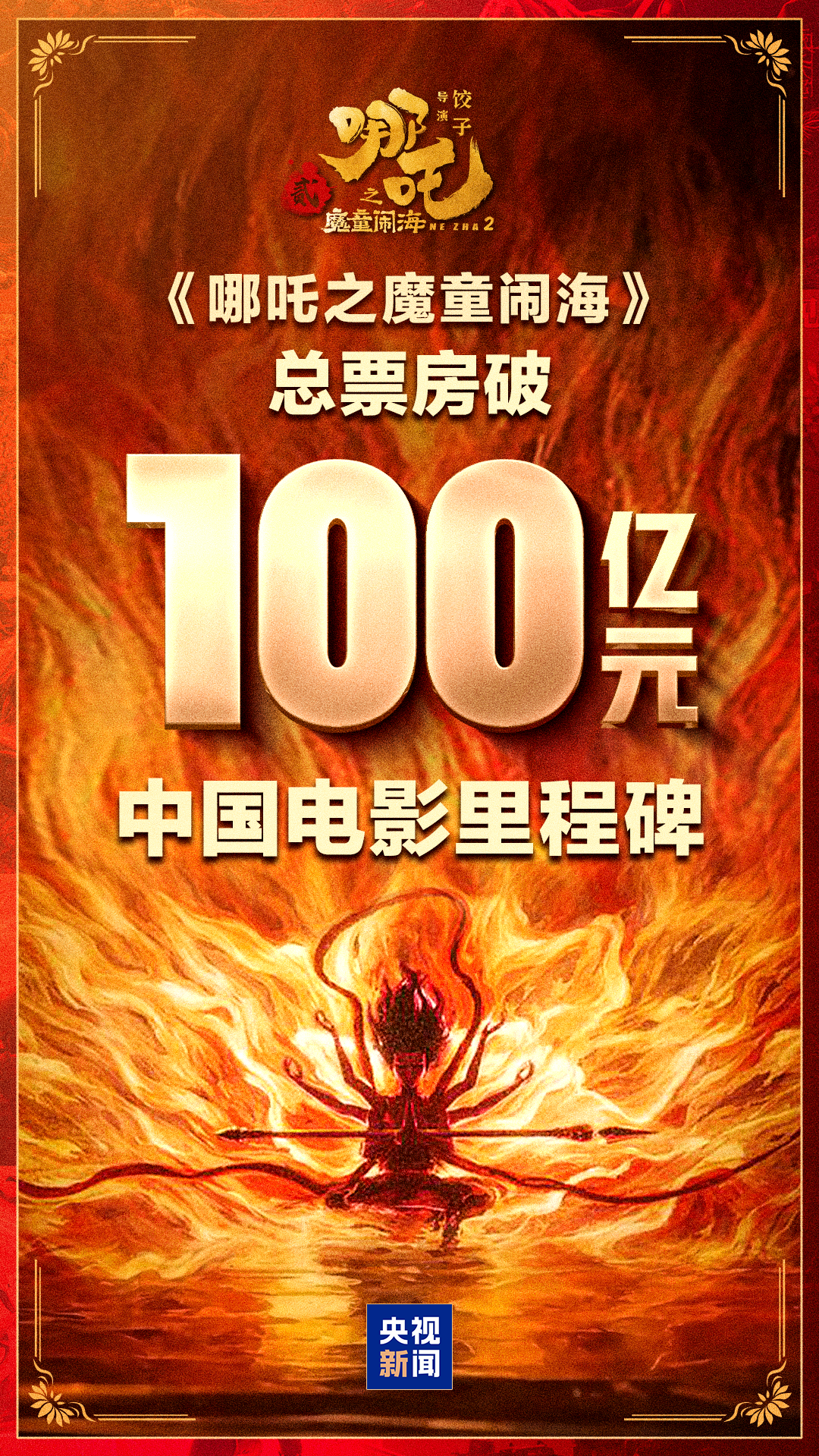 据央视新闻,据网络平台数据,电影《哪吒之魔童闹海》票房(含预售)突破100亿,成为中国影史首部票房破100亿的电影,暂列全球票房榜第17名。