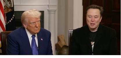 马斯克(右)与特朗普接受福克斯新闻网专访。图源:福克斯新闻网发布视频截图
