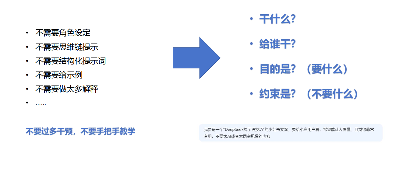 基础模型(V3):“过程-结果”清晰(指令)深度思考(R1):目标清晰,结果可以模糊(推理)RTGO提示语结构CO-STAR提示语框架结构DeepSeek R1提示语技巧(开放性)另一种路径:DeepSeek R1 作为智能体