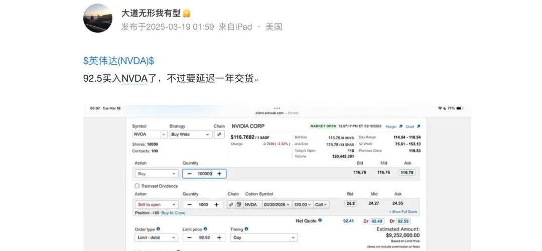 所以段永平说自己92.5美金买入了NVDA,不过要延迟一年交货。