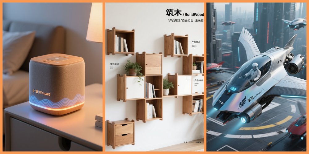每一个领域三个提示词,三张图,全部都是一次性出图,于是乎,真的是太牛逼了,秒杀各个设计领域啊,下面是整体的效果拼图:
