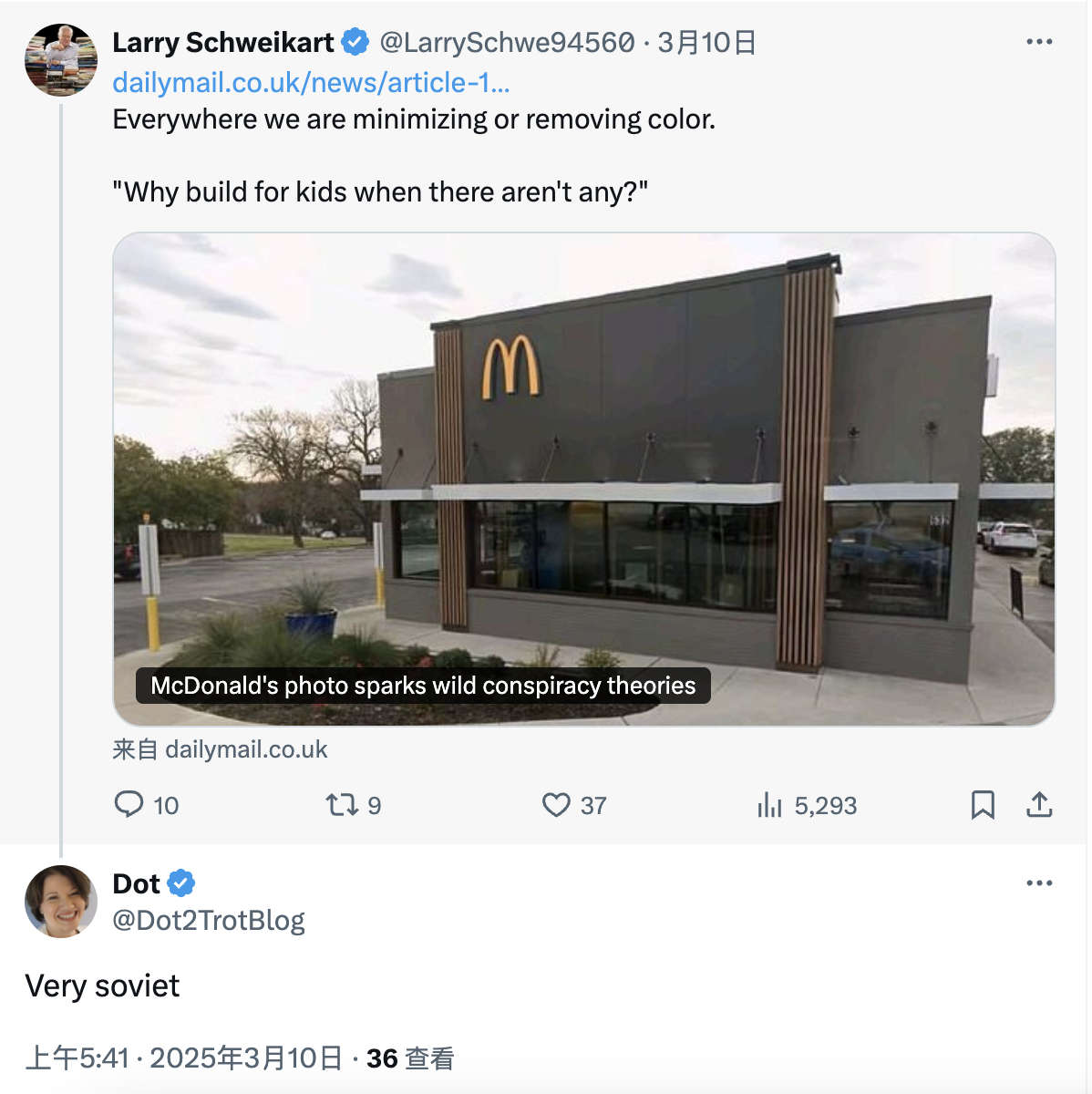 更有意思的是,有一拨美国网友认为,麦当劳的暗黑建筑风格是在致敬苏联建筑美学。