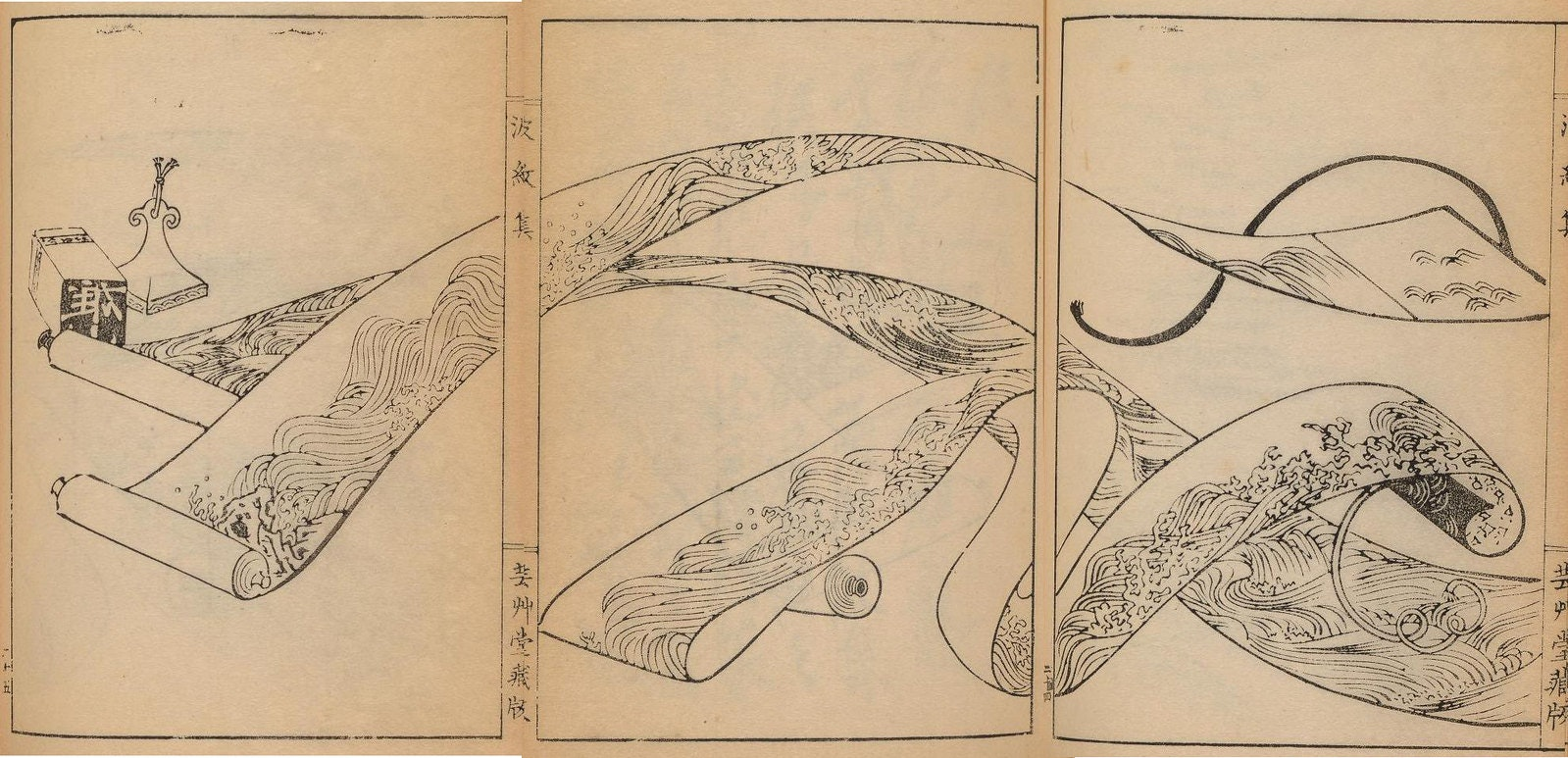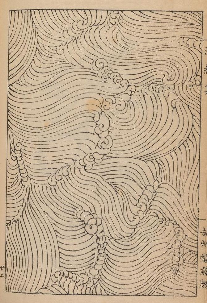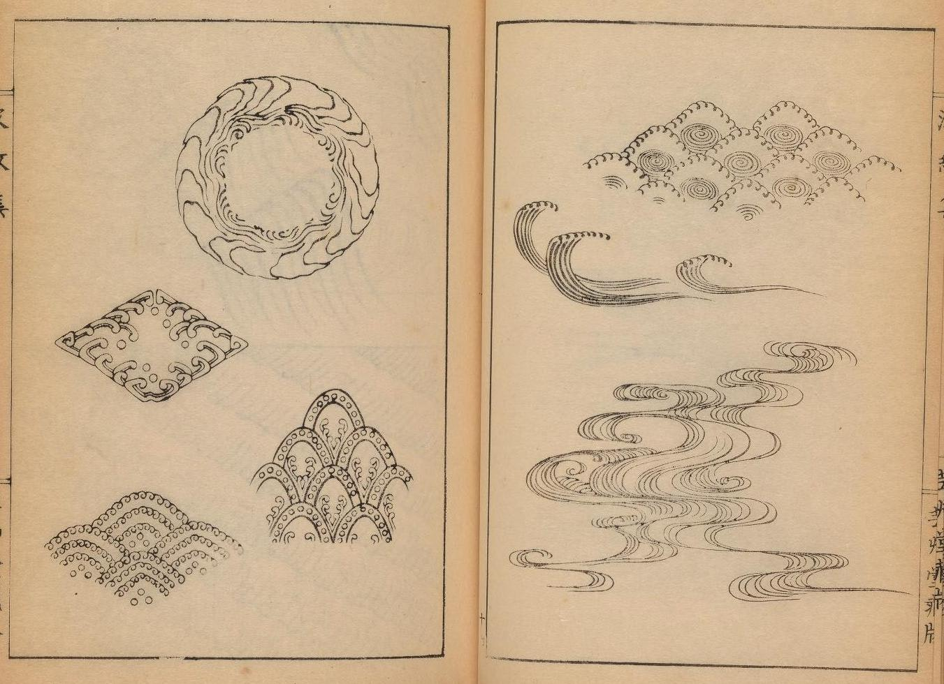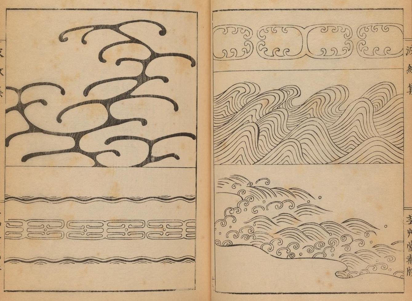 但他绘有各种波纹浪涛的白描纹样的画集《波文集》却备受赞誉,成为未来东方工艺美术设计的重要参考书。