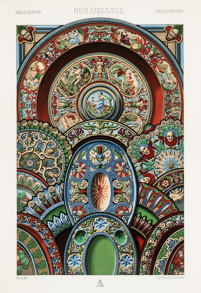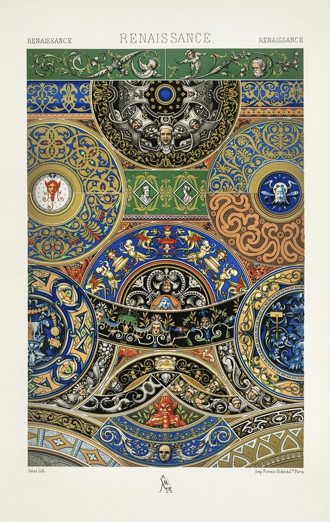 《多色装饰》首版于1869至1873年间分十期推出,其中包含100幅版画,展示了从古代到18世纪的装饰艺术,取得了极大成功。