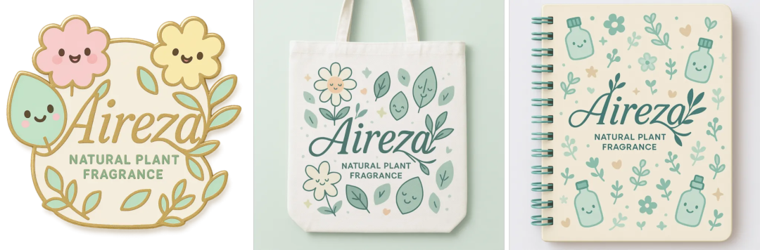 帮我设计几款可爱风格的品牌周边(如徽章、帆布袋、笔记本等),需融入产品风格和logo。