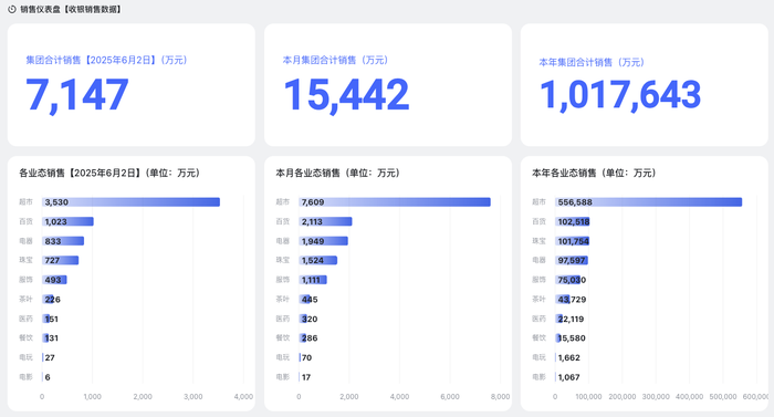 据界面新闻,6月3日,胖东来集团销售数据显示,截至2025年6月2日,本年集团合计销售额超100亿元,达101.76亿元,其中超市业态销售额超55亿元。