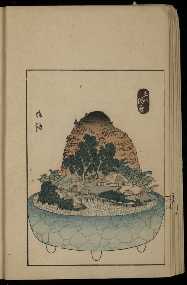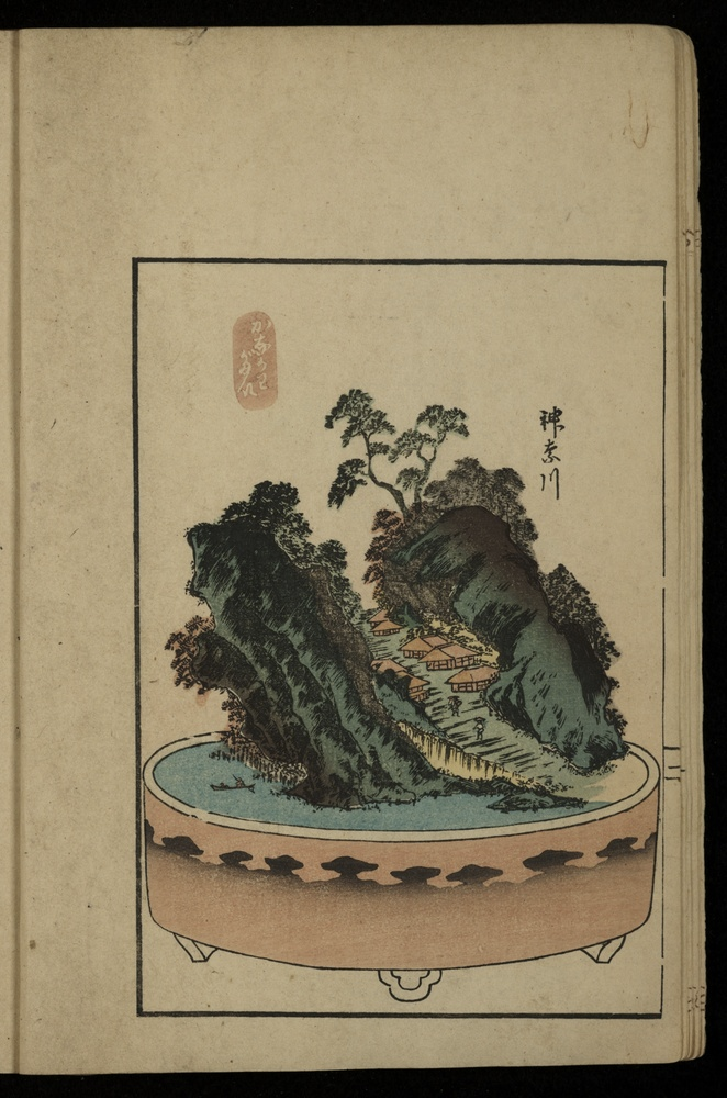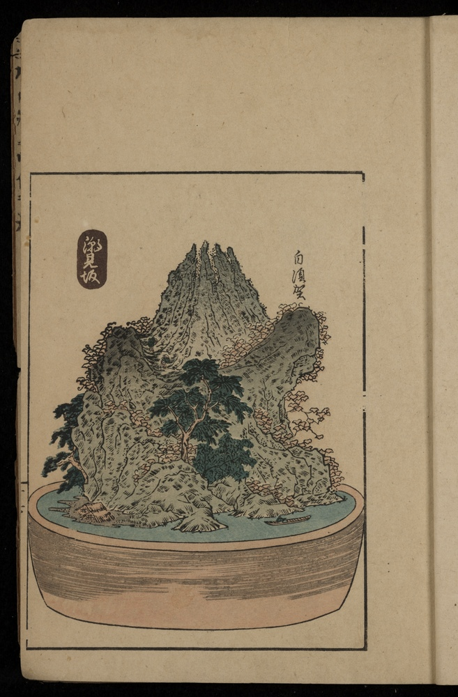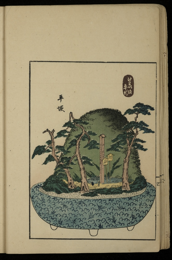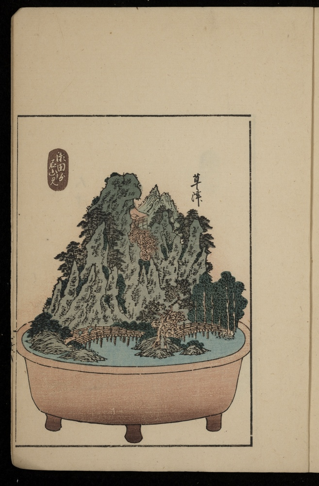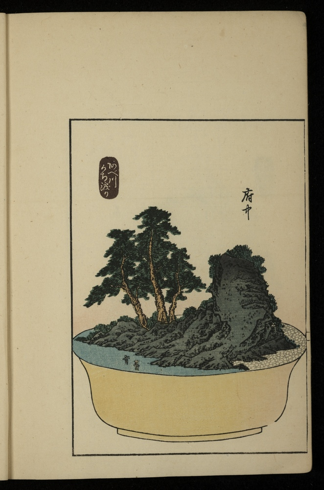《东海道五十三驿钵山图绘》出版于1848年,是日本浮世绘大师歌川芳重为其父木邑唐船制作的盆景绘制的作品,共计53幅。