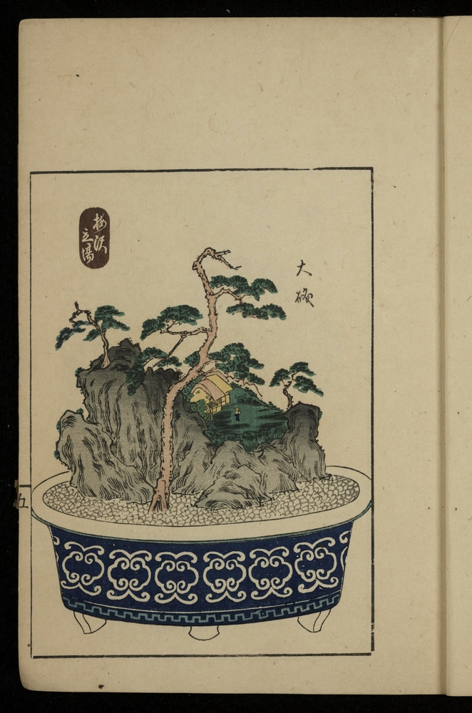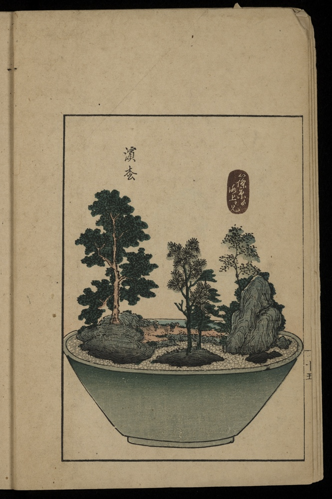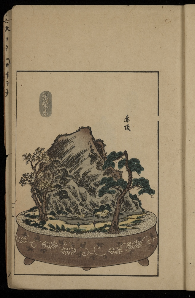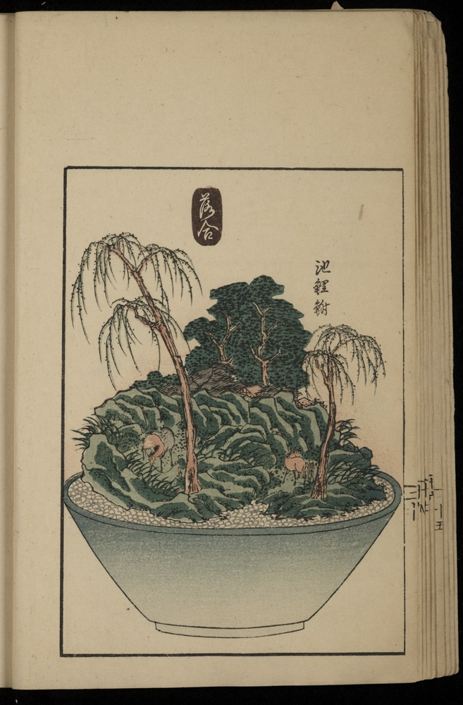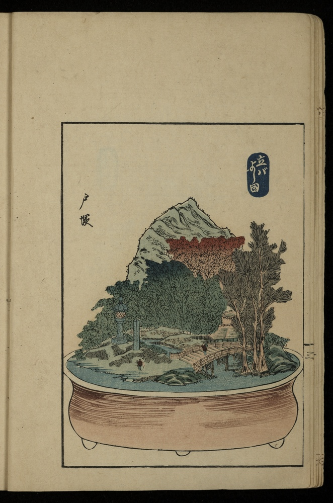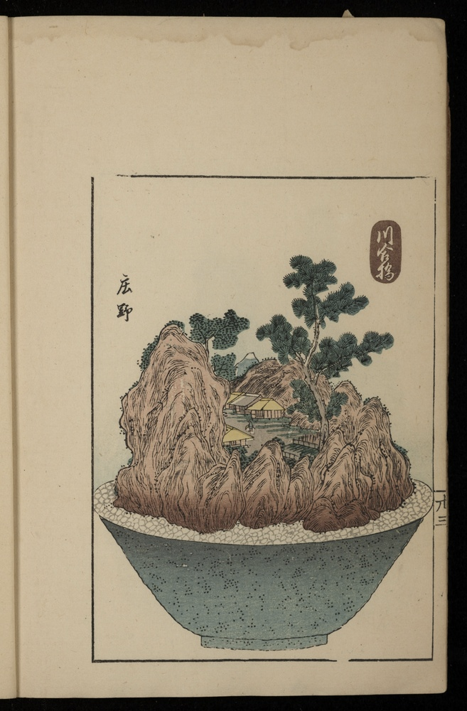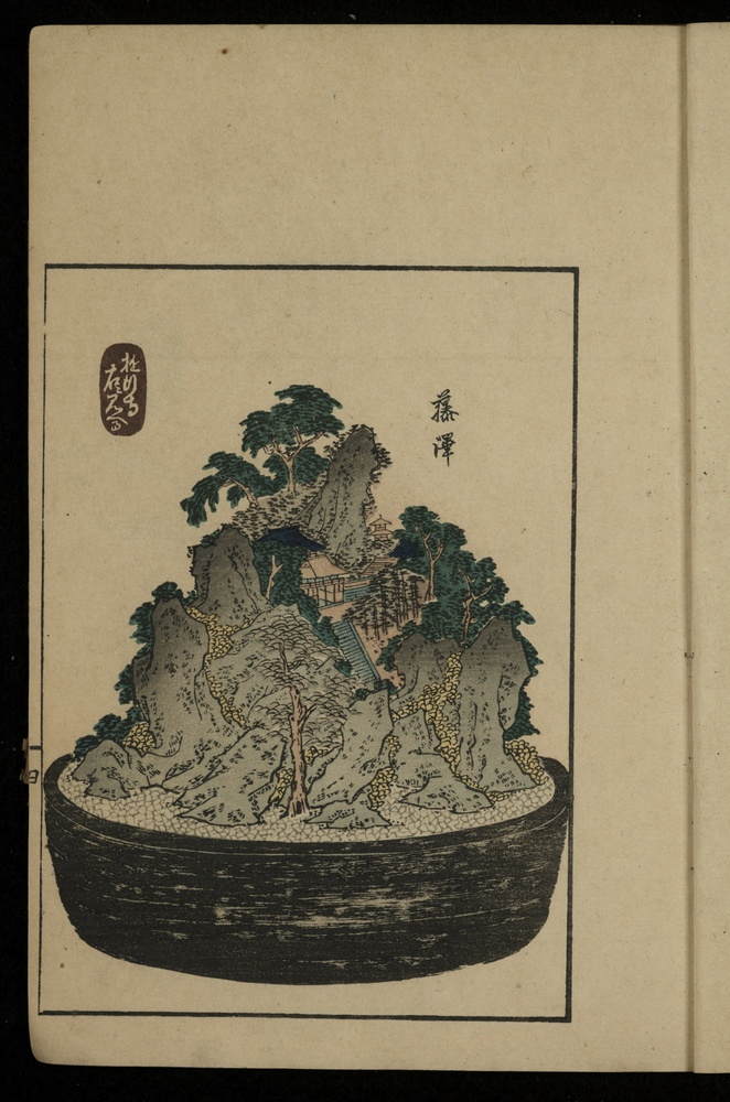 《东海道五十三驿钵山图绘》出版于1848年,是日本浮世绘大师歌川芳重为其父木邑唐船制作的盆景绘制的作品,共计53幅。