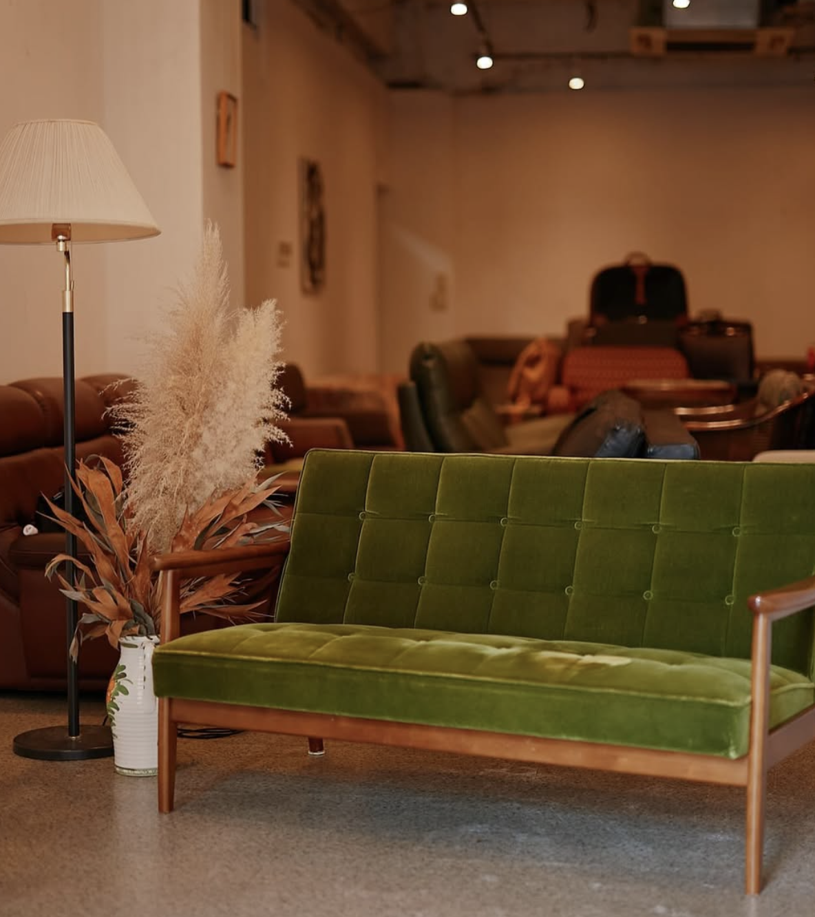 过去,KARIMOKU 的经典绿皮沙发是小众昭和美学爱好者的选择,但在现在的小红书上,这款沙发搭配暖色落地灯,已经成为了温暖之家的范式。
