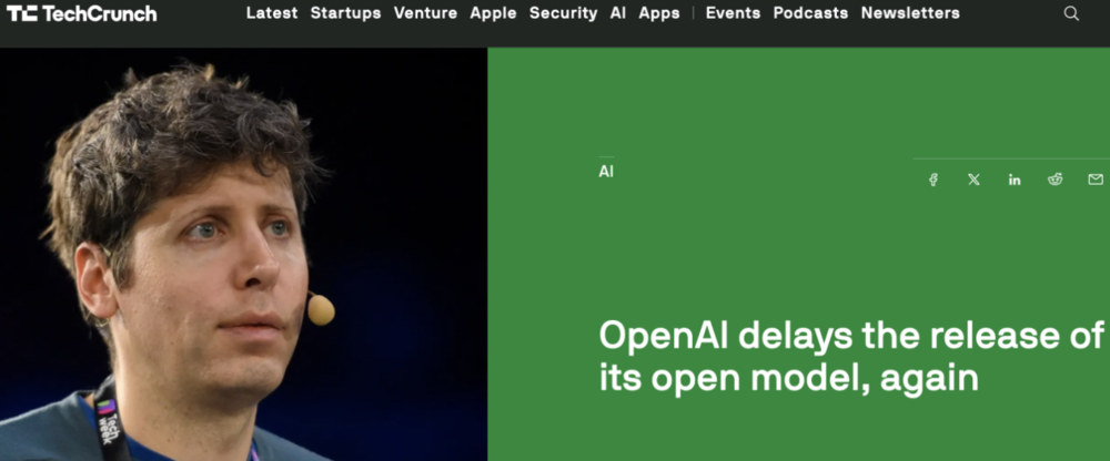 据环球网援引techcrunch报道称,OpenAI 首席执行官 Sam Altman 近日在社交平台宣布,原定于下周发布的开放模型将无限期延后,以便进行额外安全测试和高风险场景评估。该模型今年夏季已两度延期,此次为第二次调整发布计划。