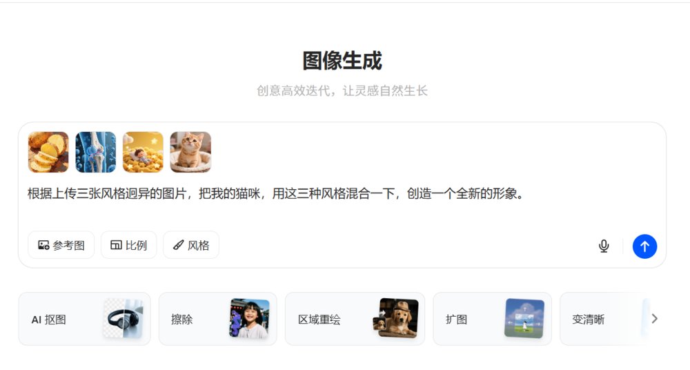 上传的参考图也可以指定你想参考的地方,比如参考第一张图的配色,参考第二张图的构图,参考第三张图的风格。