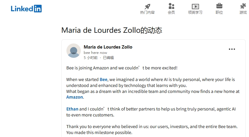 不过具体收购金额双方并未向外透露,交易完成后,Bee旗下的AI语音手环将并入亚马逊硬件矩阵,成为其继续加码AI的最新行动。