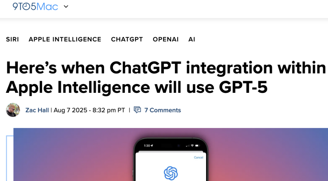 据环球网,8月9日消息,据9to5mac报道,苹果公司将于下月发布 iOS 26、iPadOS 26 和 macOS Tahoe 26 ,届时将把 Apple Intelligence 中的 ChatGPT 核心模型从 GPT-4o 升级至最新发布的 GPT-5。