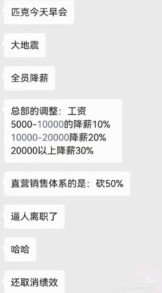 董事长许景南在9月17日内部高管会议上表示,降薪针对亏损部门和高薪岗位,调整幅度为10%-50%,低收入员工工资将补足至3000元。绩效奖金制度保留,整体降薪幅度不到10%。