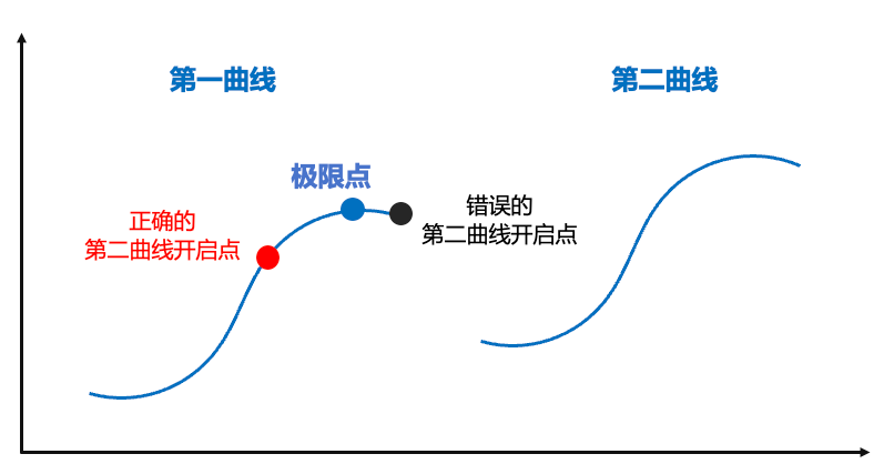 这是幸福的时刻,同时也证明这是市场上升期。而任何一个上升的市场,都会迎来它的极限点,需要开展第二曲线来突破极限点。