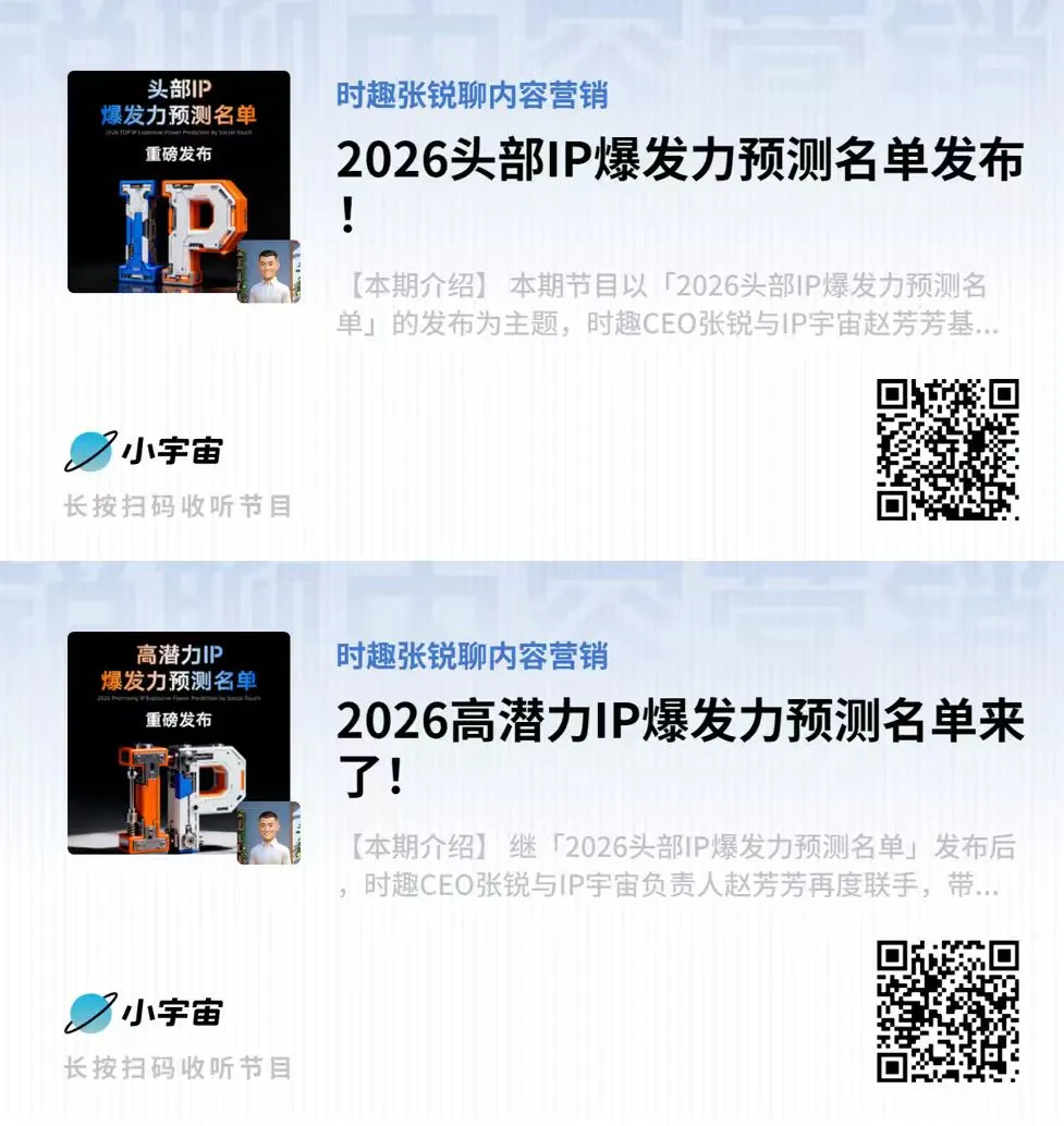 每年Q4,时趣IP宇宙团队(可能是中国每年帮助品牌采购IP最多的专业服务团队)都会结合他们所积累的对海量IP的了解,把在明年会有重要的时间点或者大动作的IP,进行一个总结,提前让更多的品牌客户知道,2026年哪些IP是在一个影响力的上升周期。