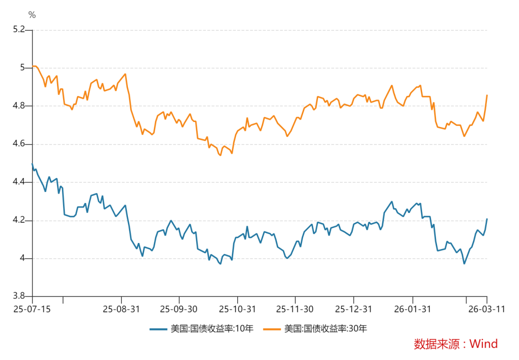 10年期美债收益率已达到4.24%水平,30年期美债收益率达到了4.86%,刷新了美伊冲突以来的最高水平。这反映市场认为油价会维持高位,甚至越来越高,所以投资者会要求更高的收益率来对冲未来购买力下降的风险。