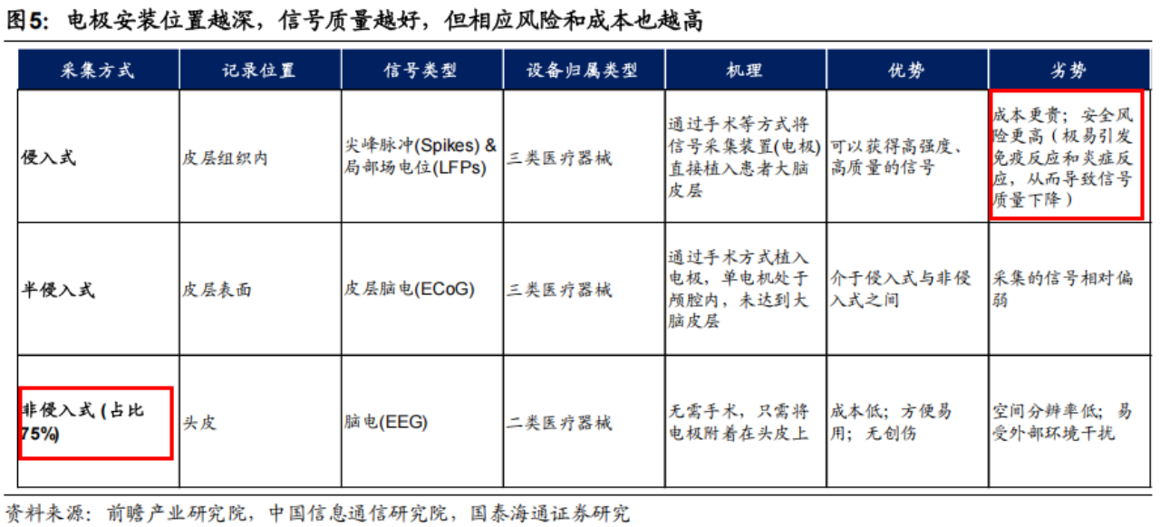 从技术维度看,分为非侵入式、半侵入式、侵入式路线。目前国内应用以非侵入式(头戴设备)为主,但侵入式/半侵入式路线也在拓展中。