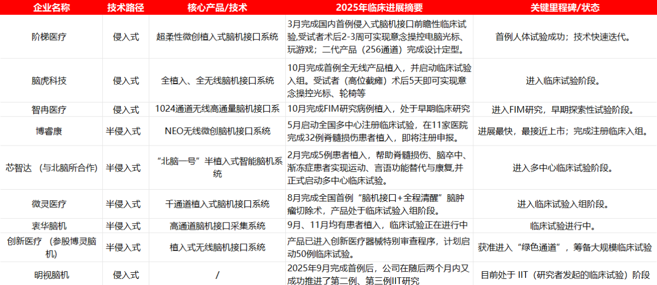(1)对于走侵入式路线的企业:产品目前在做临床试验,投资应重点考察 “临床进度、注册预期与后续的商业化准备” 。谁先获批,谁就能赢得先发优势。