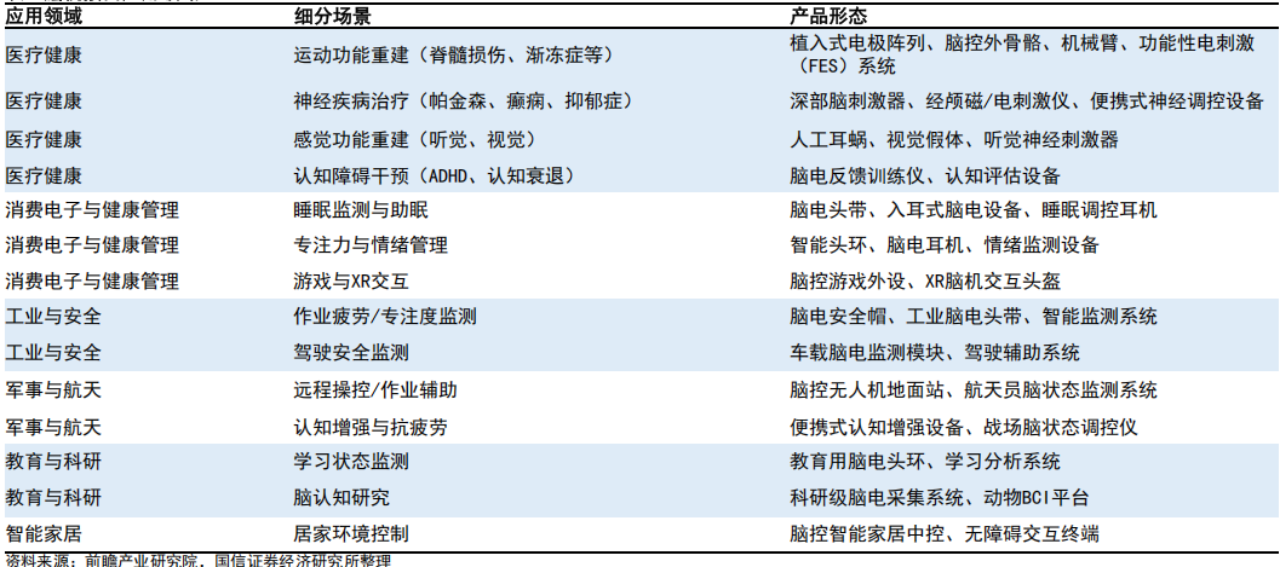 如在消费领域,脑电头环、睡眠监测耳机、脑控游戏外设等产品,正渗透到专注力训练、睡眠管理、XR 交互等日常场景。此外,脑机接口还在工业作业安全监测、军事远程操控、教育学习状态评估、智能家居无障碍控制等领域开展试点与研发。