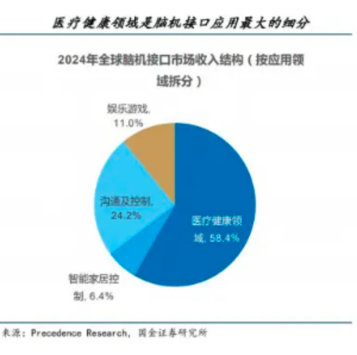 数据也佐证了这一点:2024年中国脑机接口下游解决方案企业中,医疗方向占比接近60%,消费、工业、教育等非医疗行业合计约40%。