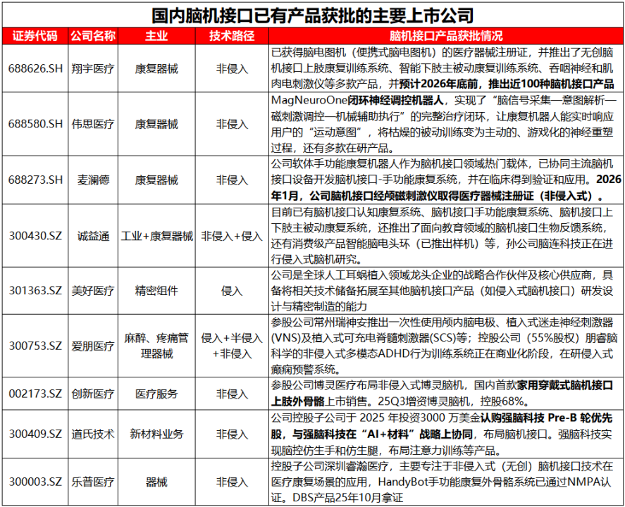 (2)对于非侵入式路线的企业:部分产品已获批上市,投资需转向 “明确的商业化场景与市场拓展能力” 。尤其重点关注在康复、消费等领域已有成熟产品并开始产生收入的公司。