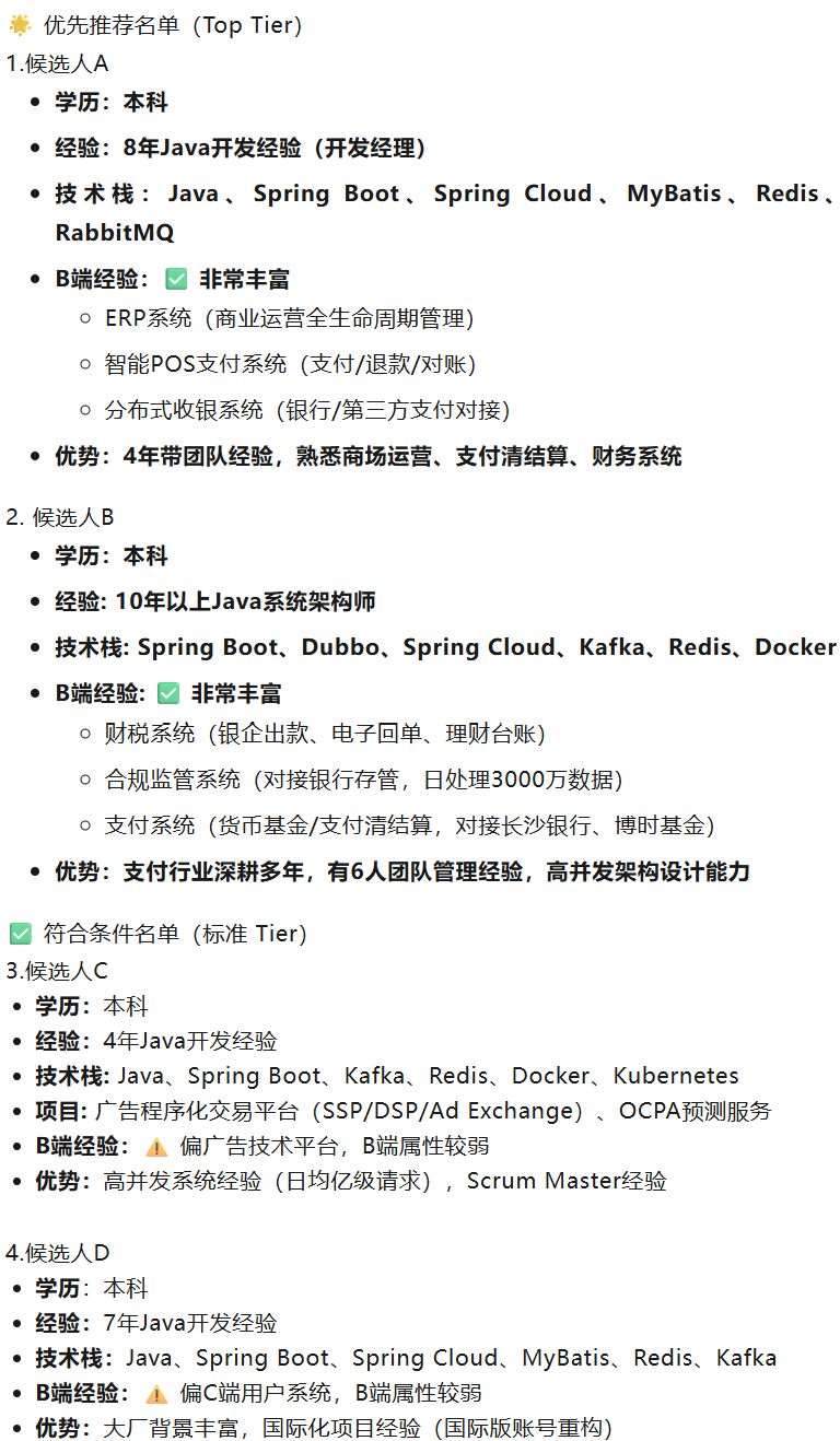 比如:只要本科及以上、有 3 年以上 Java 经验、做过 B 端产品的候选人。或者有大厂经历。