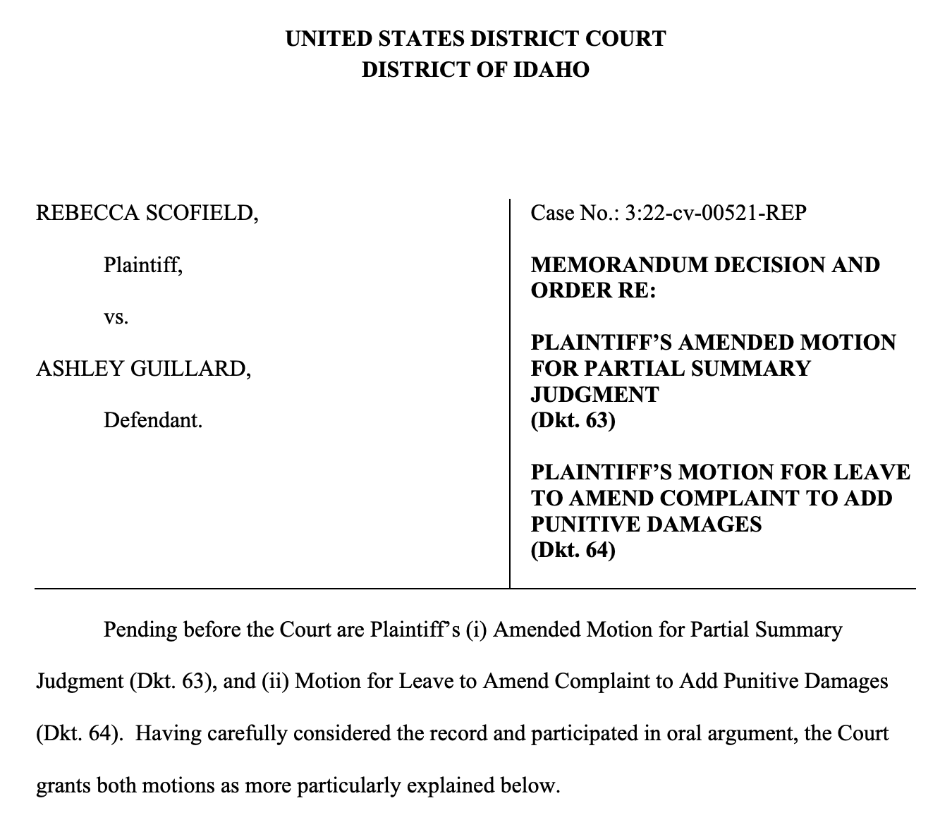 在她自己准备的法律文件中,她称丽贝卡对她提起的诉讼是“骗人的”,辩称对她的判决“与案件的证据或事实不符”,并要求爱达荷州联邦法院撤销陪审团对她作出的不利判决。“很遗憾……我不得不上诉,尽管我曾希望‘我们都能向前看’。”吉拉德补充道。