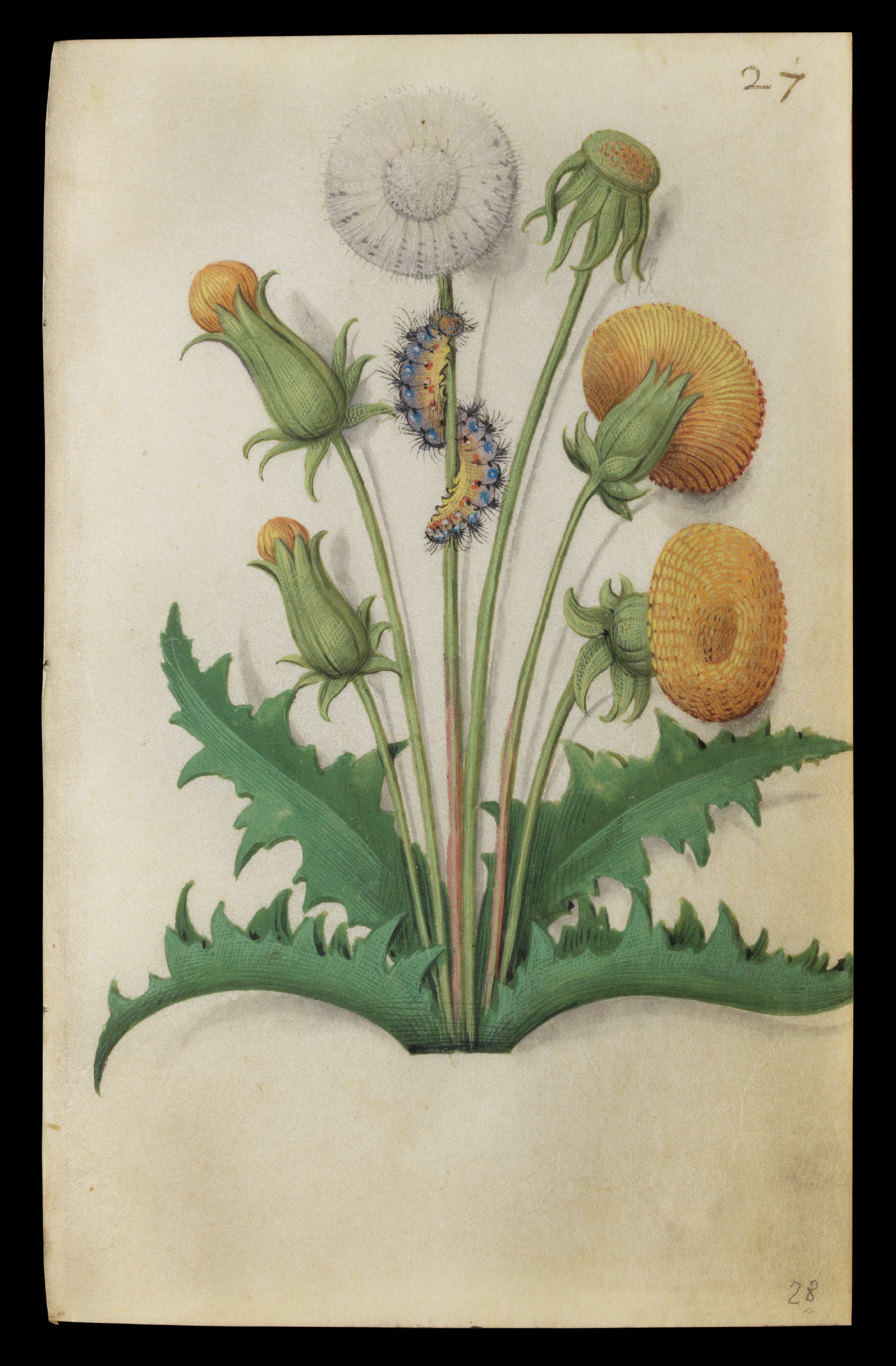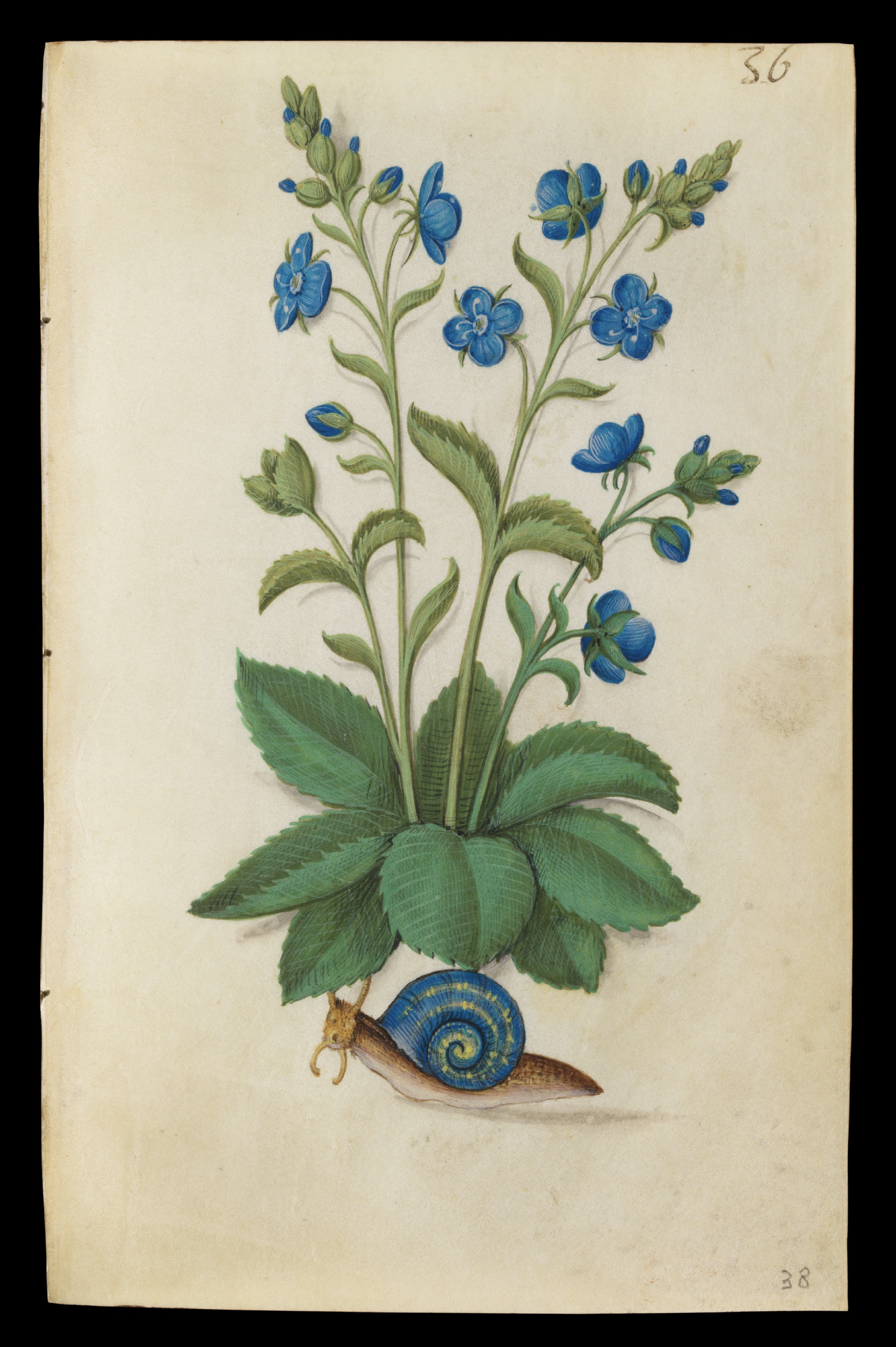 这部画册将植物以肖像视角精妙绘制,辅以金箔与矿彩,创作出了赏心悦目的视觉观感,按风格来说属于北欧中世纪手抄本,这里所说的北欧不是今天的地理概念,而是阿尔卑斯山以北的艺术风格。