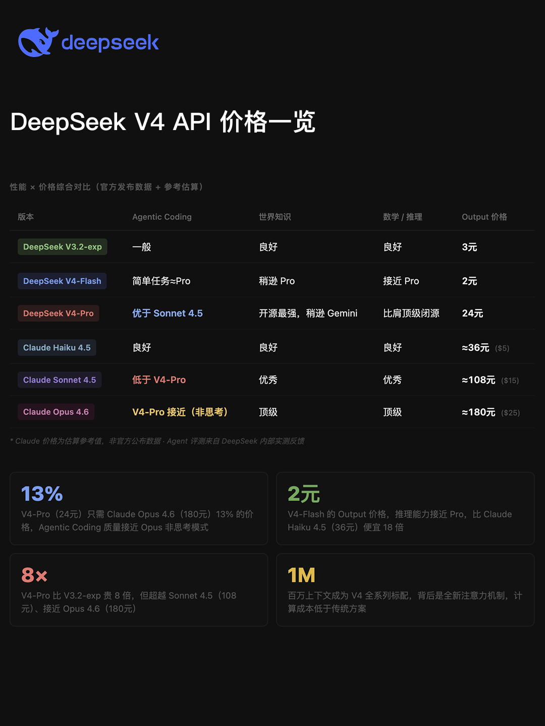 而且 DeepSeek V4 在发布时,价格栏还有一行小字:
