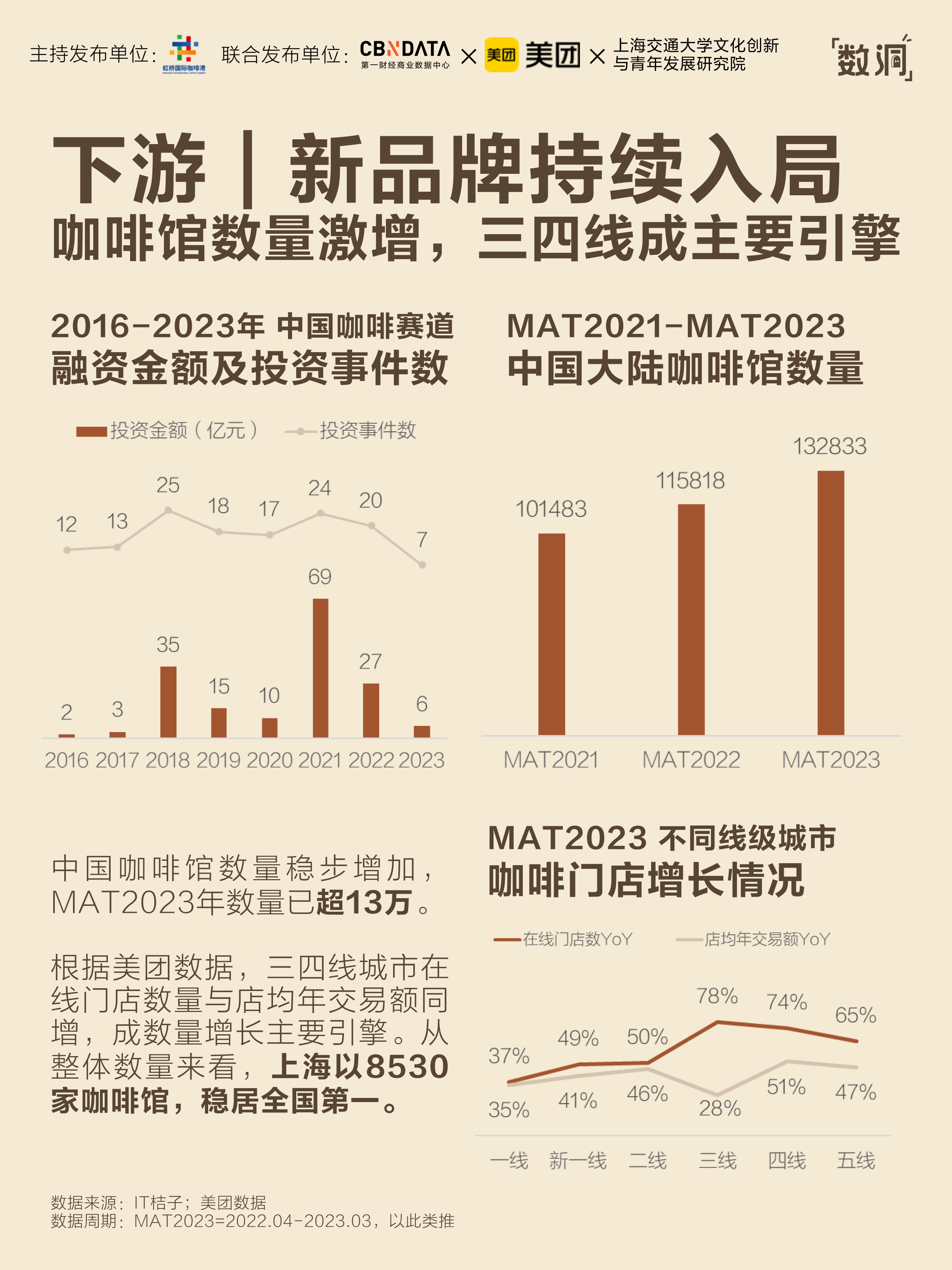 5️⃣ 下游 | 中国咖啡品牌持续入局,咖啡馆数量快速增长,三四线城市成主要引擎(图5)