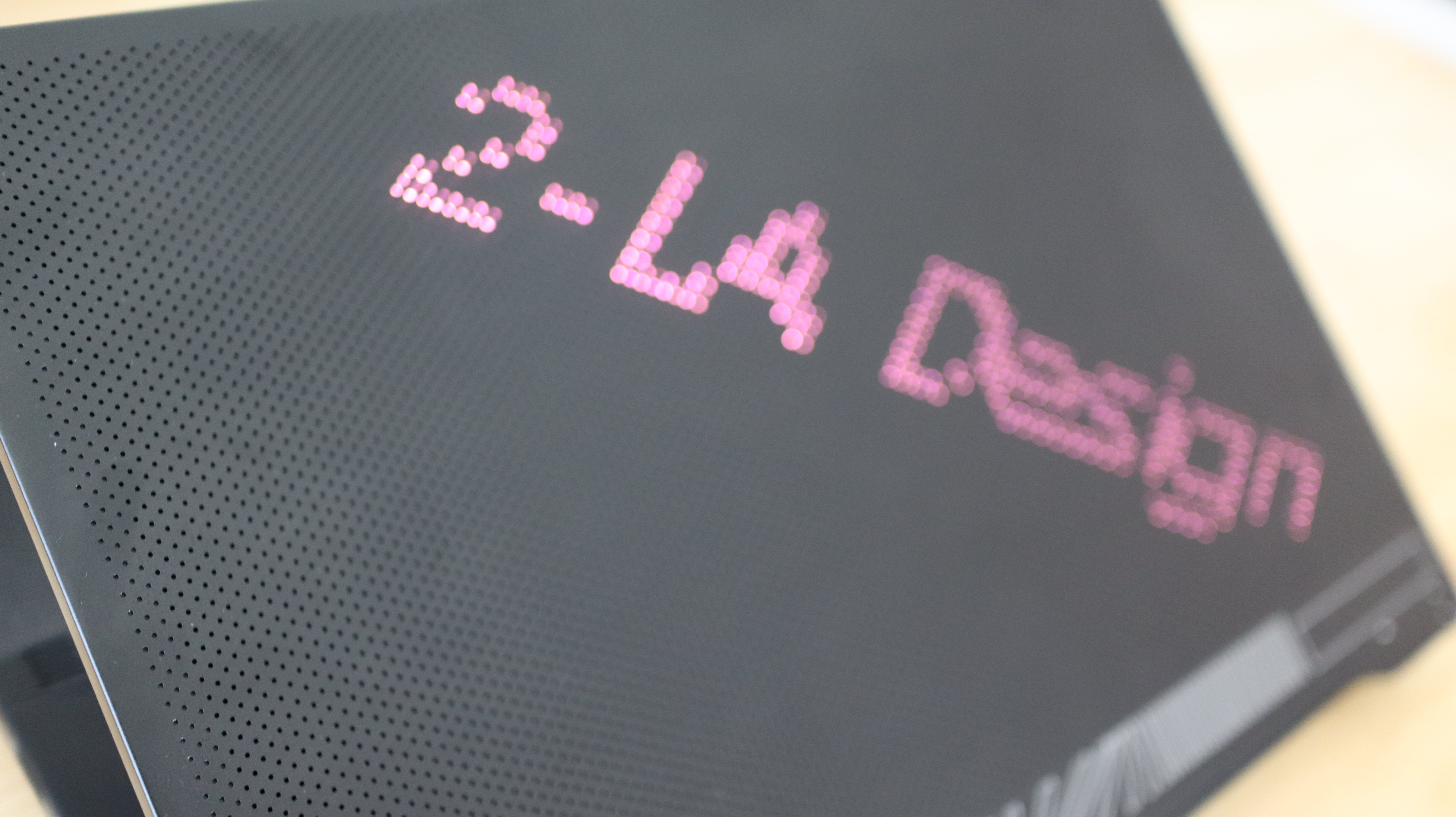 之所以推荐ROG与ACRONYM联名的这款笔记本,一是出于其区别于苹果电脑的设计,联名设计的独特配色让设计独特并具有话题性。二是屏幕后方可以自定义显示内容,我常常会根据会议对象、场合来定制显示的内容。比如在做汇报时,我会设置自己工作室的名字作为显示内容,2-LA Design的字体可以一直出现后盖上。 缺点: 充电器稍大,不过这也是笔记本电脑的普遍问题。