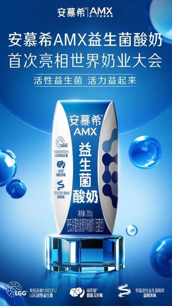 1、安慕希益生菌酸奶新品上市,专利技术打造首款常温益生菌酸奶
