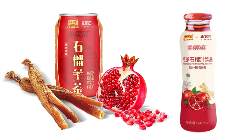 6、正官庄、王老吉、美果来联合推出石榴参茶和红石榴汁饮品,打造健康新食尚
